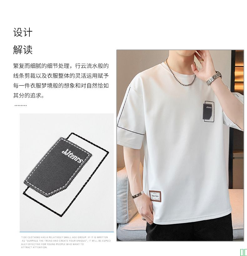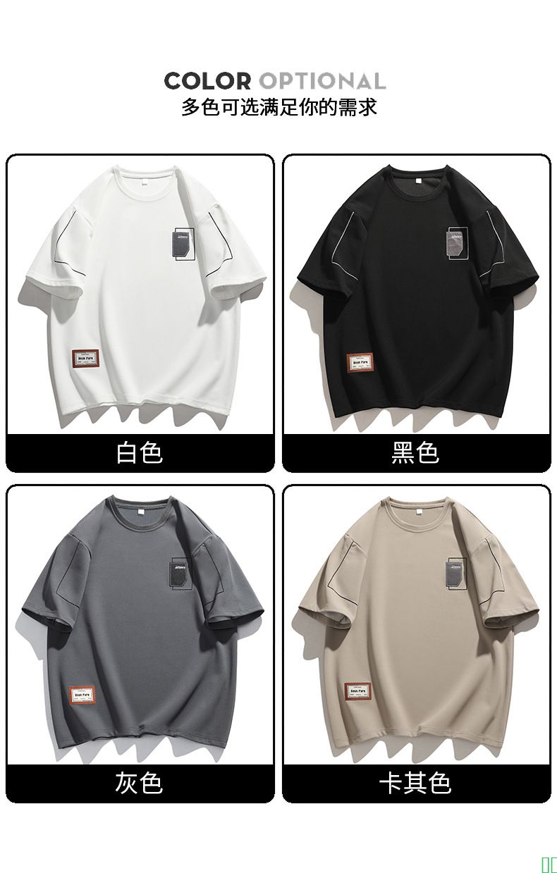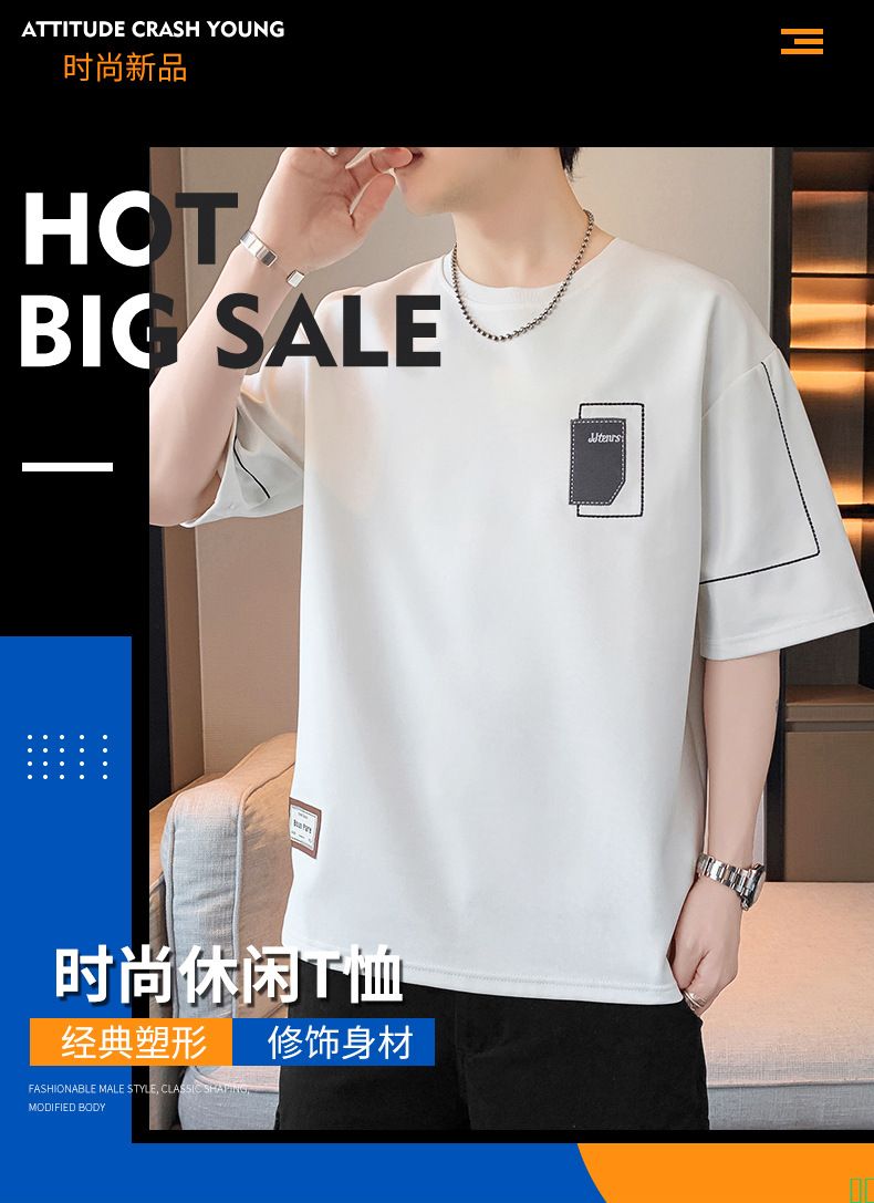 夏季潮流港风男装绣花圆领短袖T恤 胖男士加肥加大码宽松纯色体恤