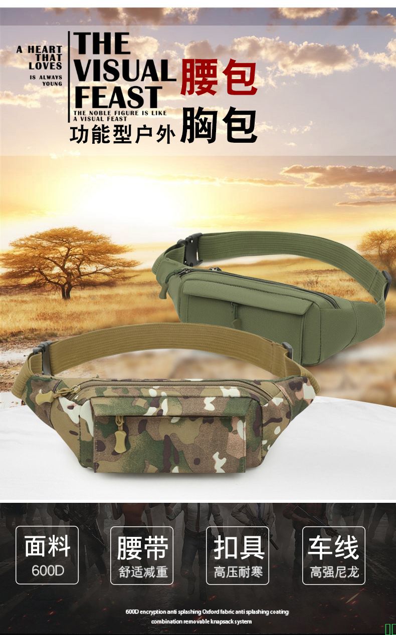 新款男士腰包手机包多功能运动休闲男包户外迷彩单肩斜跨包胸前包