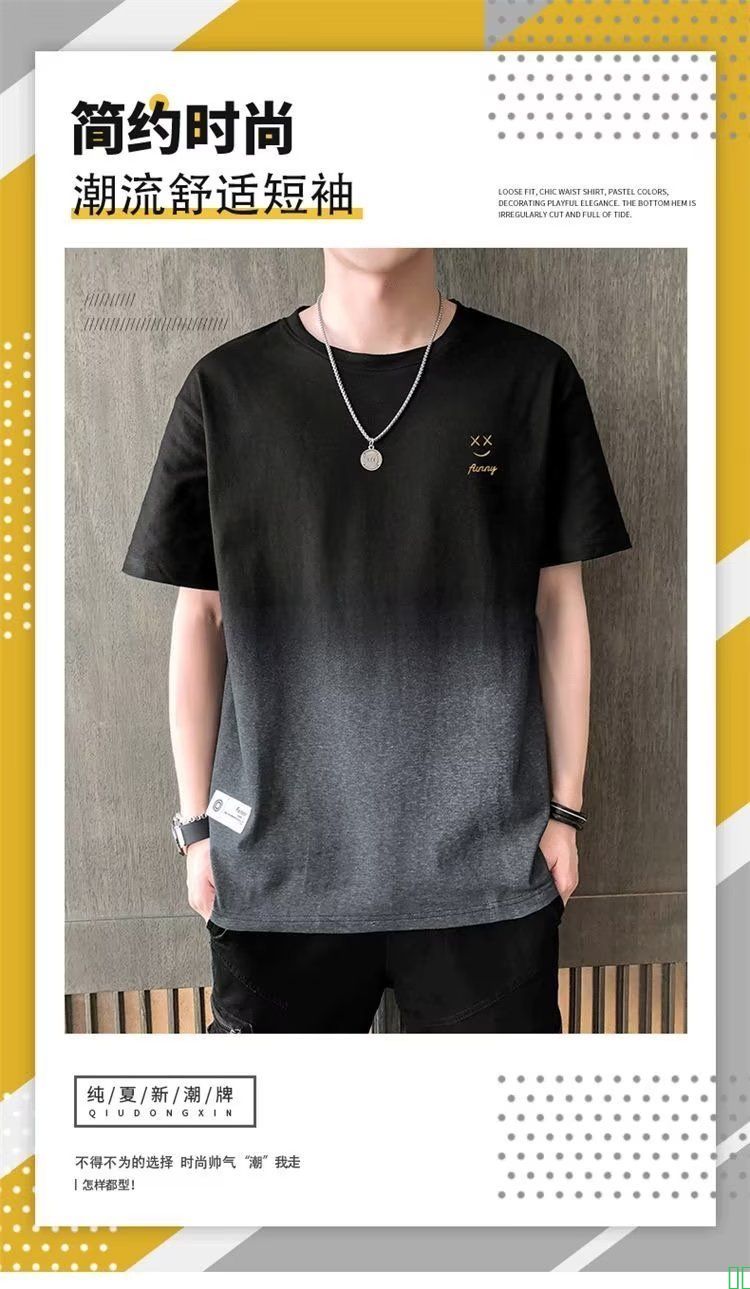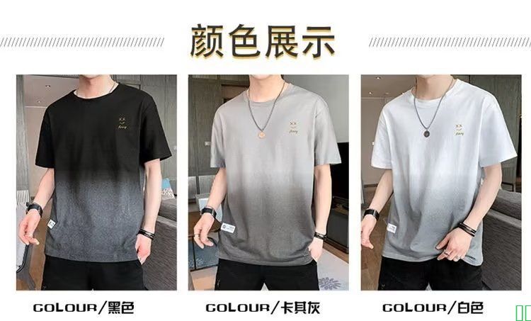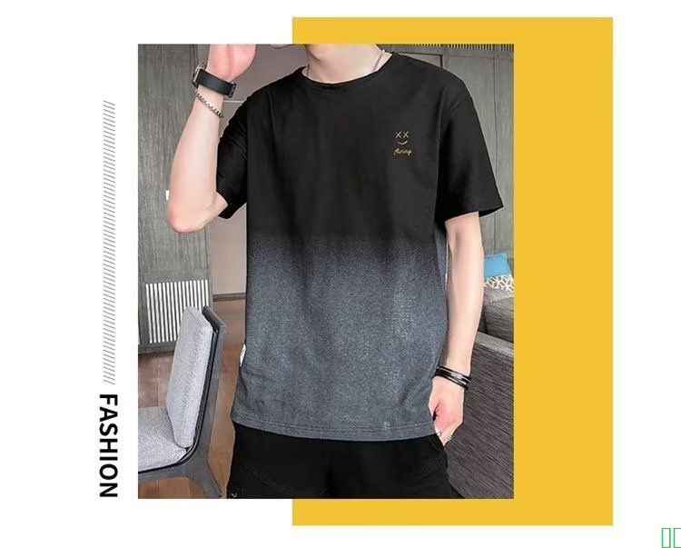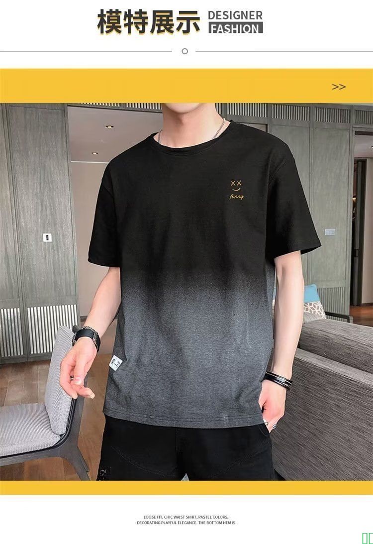 夏季男士渐变色短袖男休闲青少年圆领t恤韩版潮流男装体恤ins