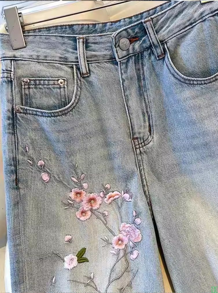 浅蓝色高街宽松阔腿牛仔裤女加绒新款高腰美式设计感垂感弯刀裤子