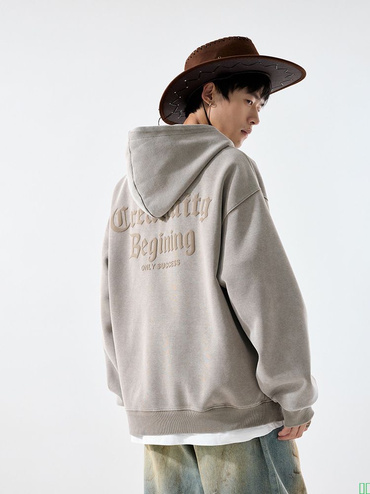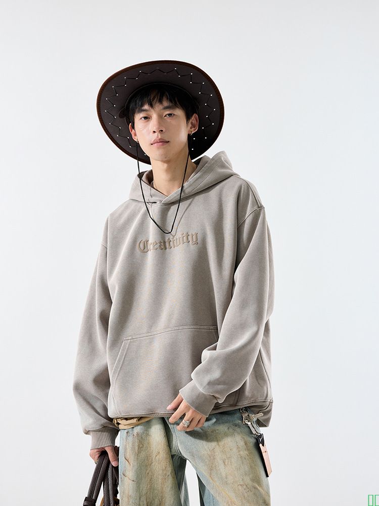 秋冬季水洗做旧美式连帽加绒卫衣男ins潮牌印花字母高街重磅帽衫