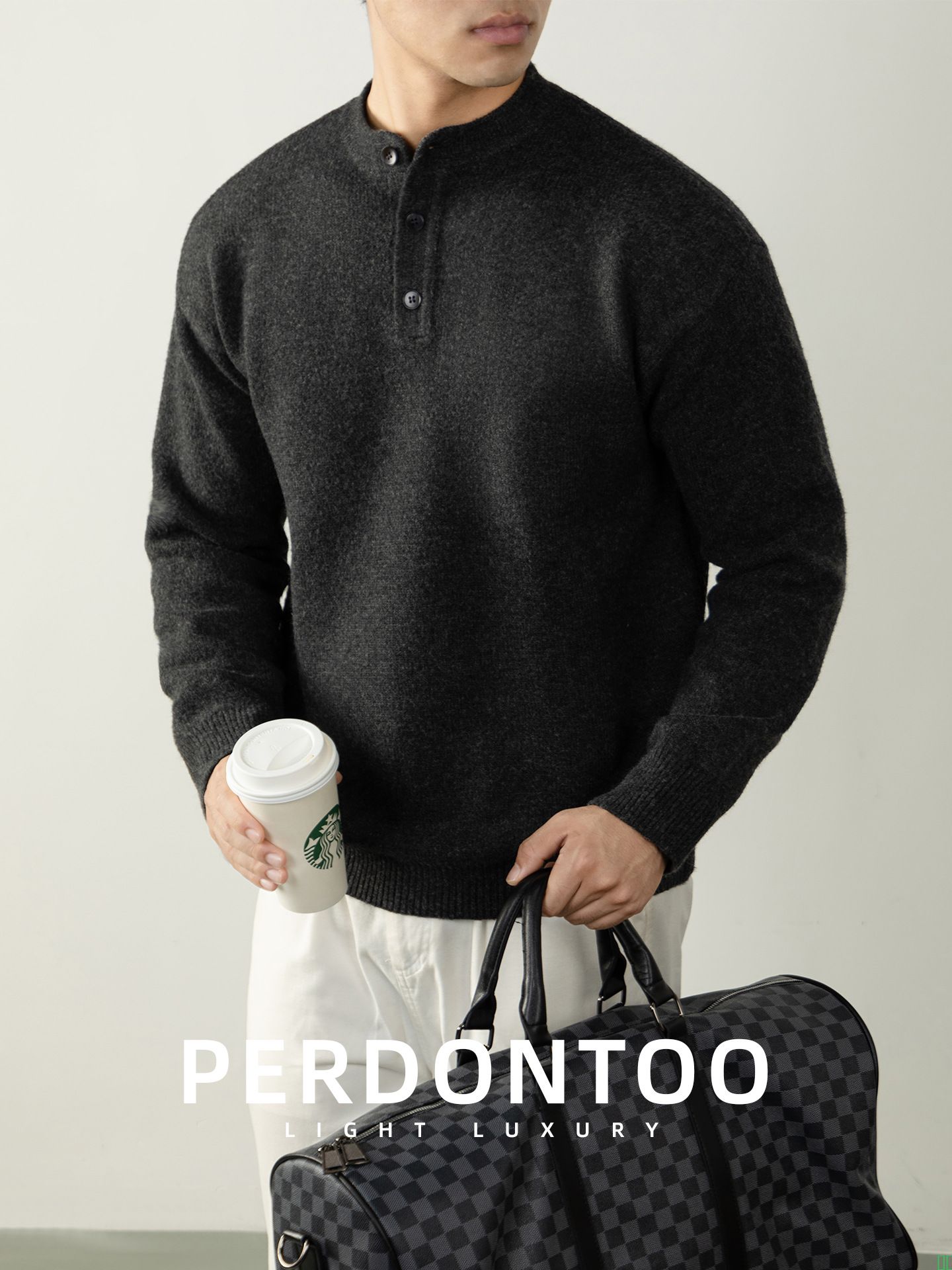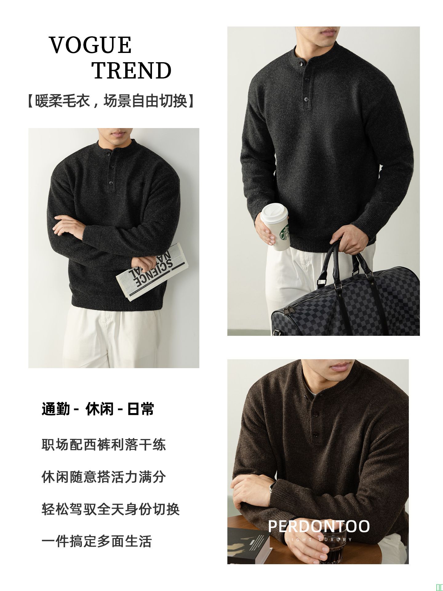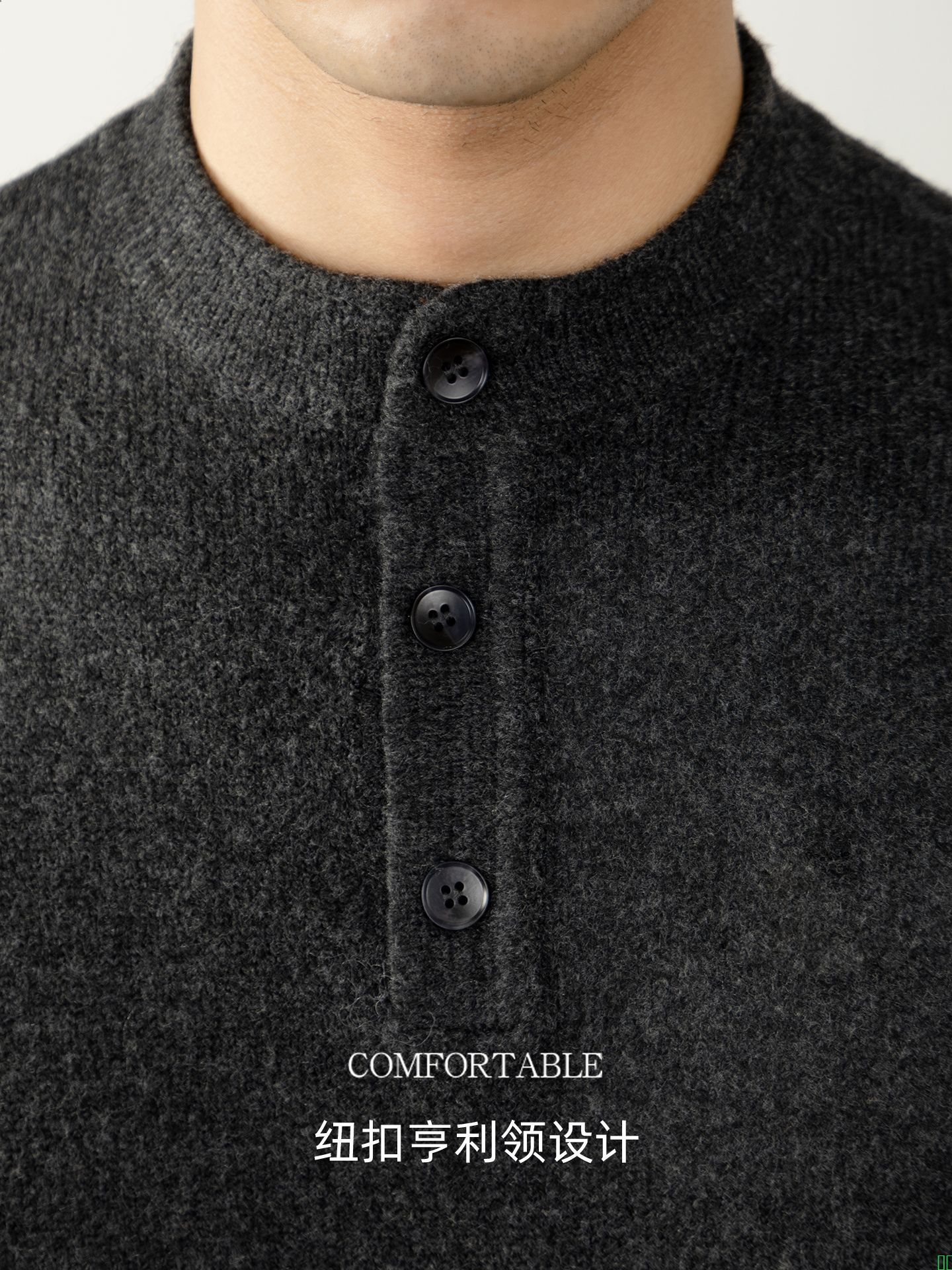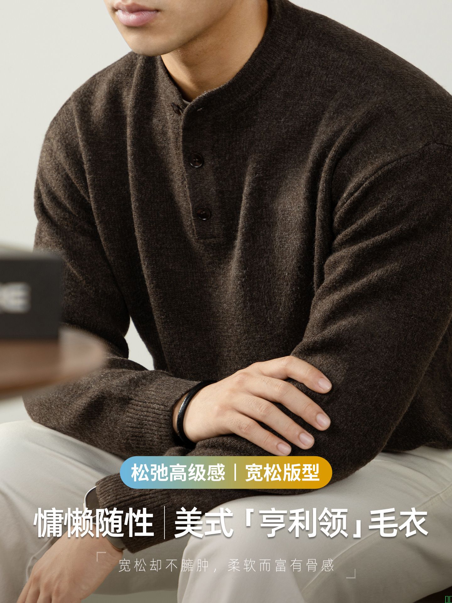 秋冬保暖BI备!美式亨利领宽松慵懒纯色毛衣男士厚款针织衫高级