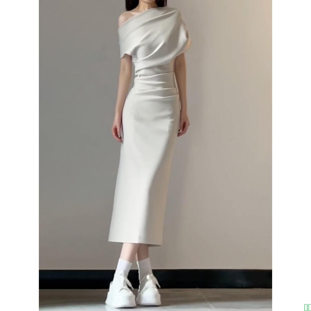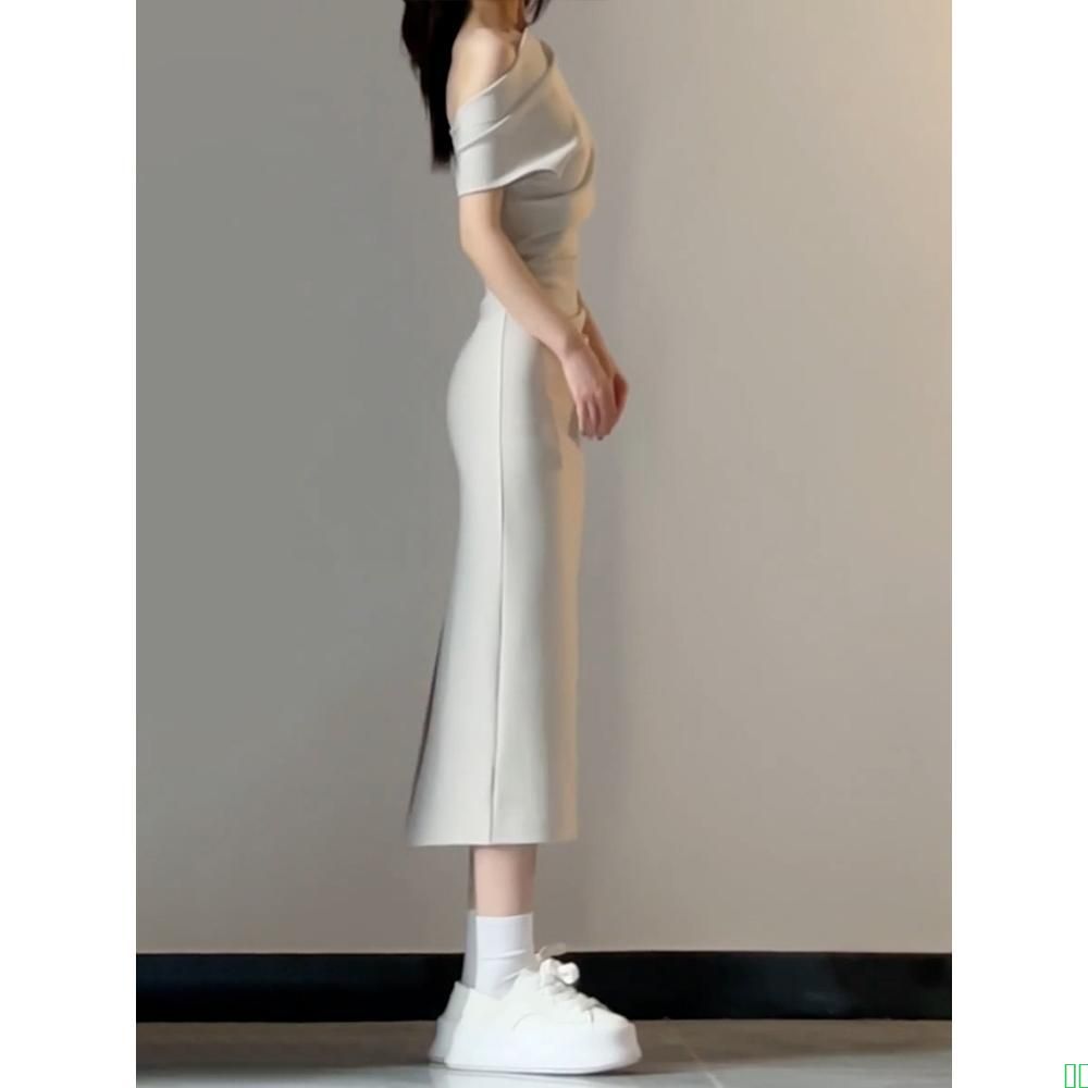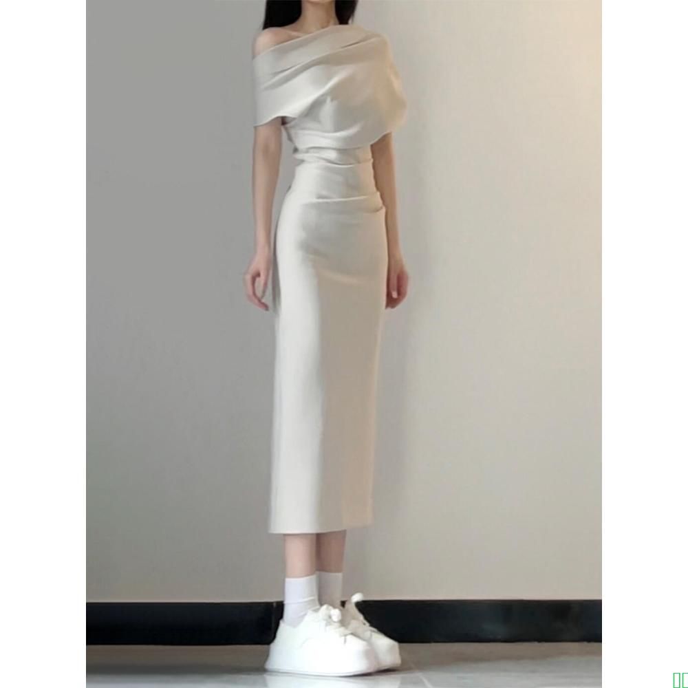 法式气质高级感斜肩连衣裙子女装夏季休闲新款御姐轻熟风收腰长裙