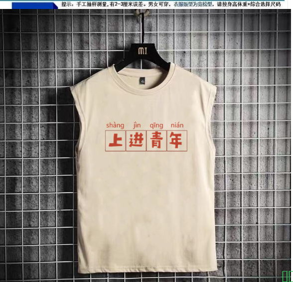 国潮复古80年怀旧坎肩背心无袖t恤70年五讲四美文字衣服夏
