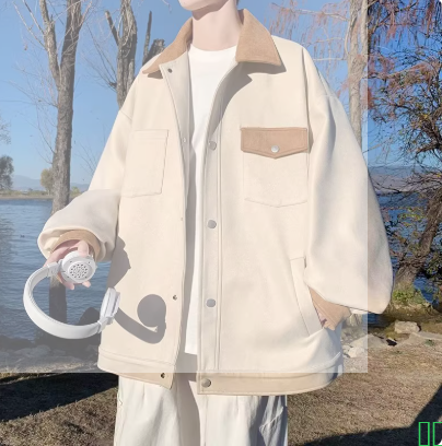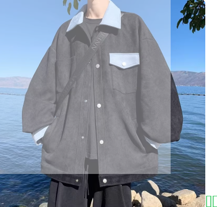 麂皮绒工装夹克士秋冬季潮牌痞帅款外套级感潮流宽松上衣服