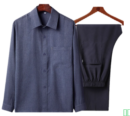 棉麻中老年士短袖衬衫爸爸套装老年人长袖两件套爷爷衬衣百搭
