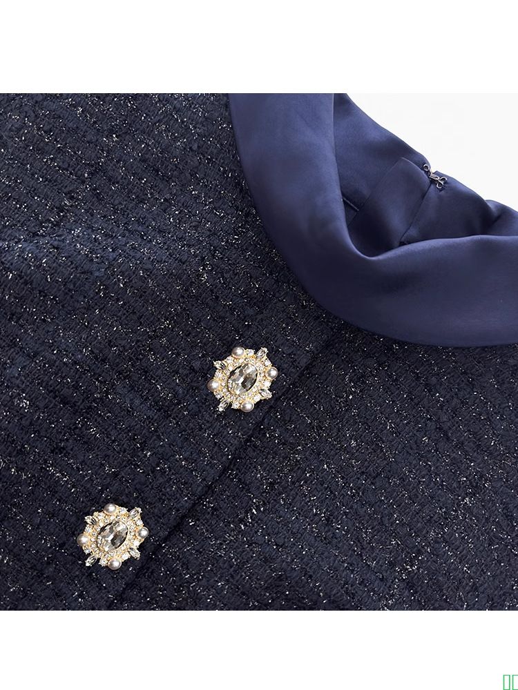 藏蓝色欧美女装名媛气质套装女2025秋新款粗花呢上衣缎面半身长裙