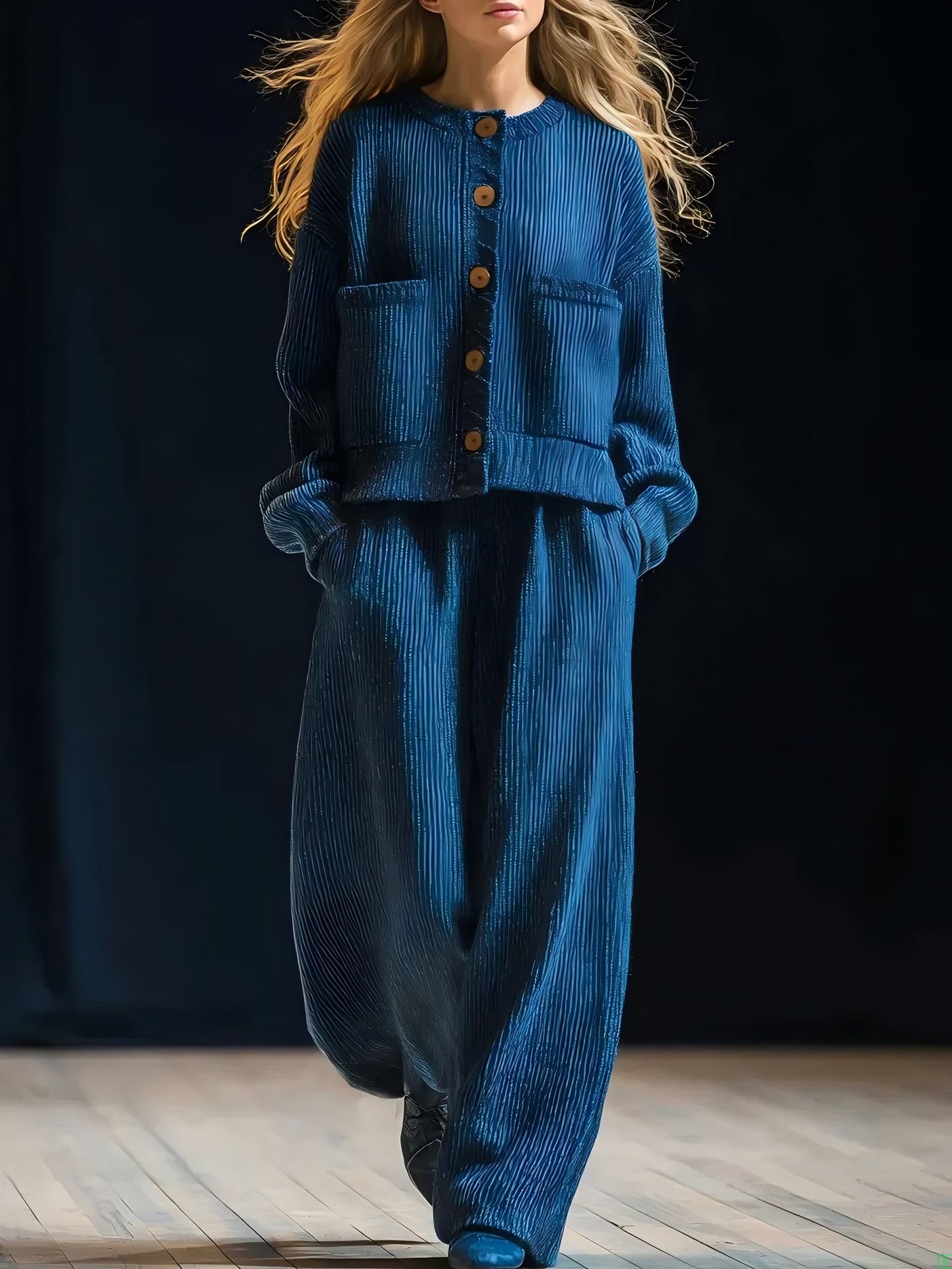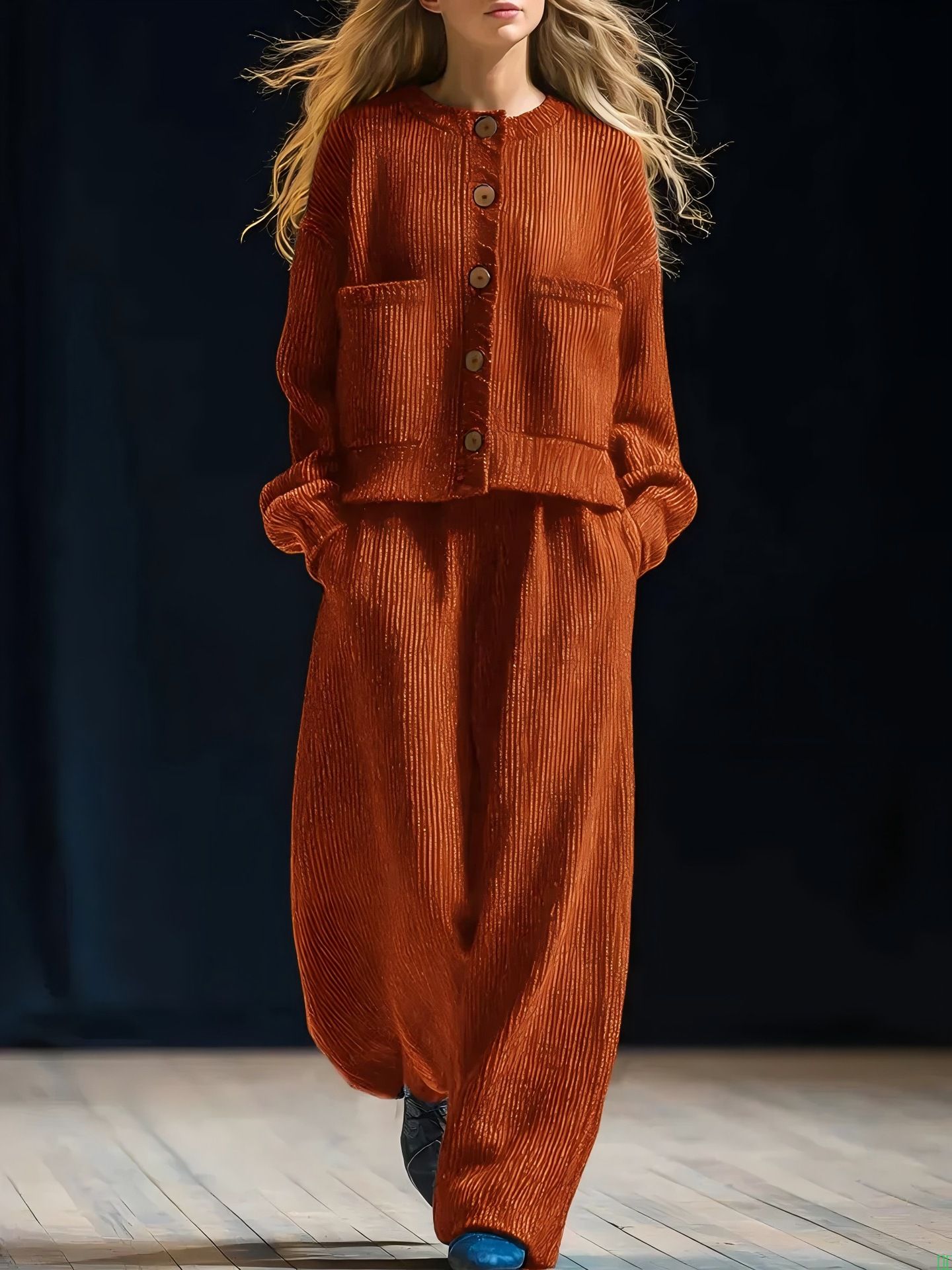 2025秋冬女士纯色圆领长袖休闲宽松针织开衫弹力腰带休闲宽松阔腿