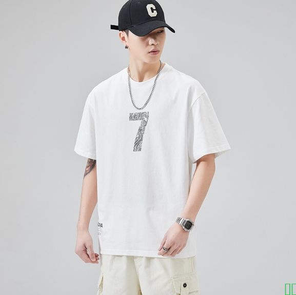 【丽阳服装】t恤潮牌百搭宽松ins夏季数字印花白色半袖重磅T恤男