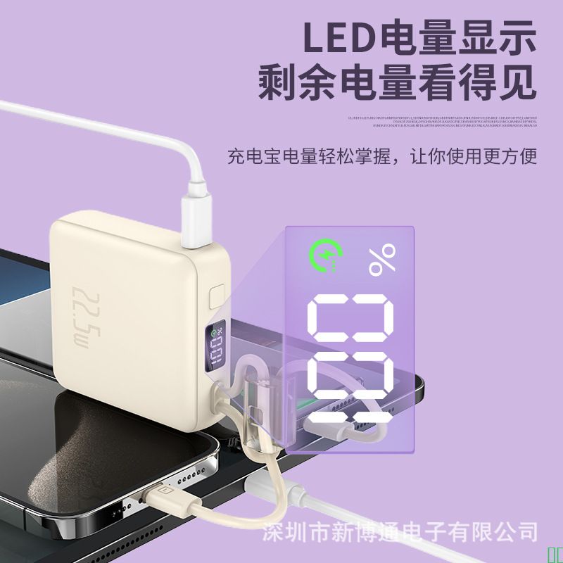 2025新款快充22.5W充电宝自带线小巧便携10000毫安移动电源