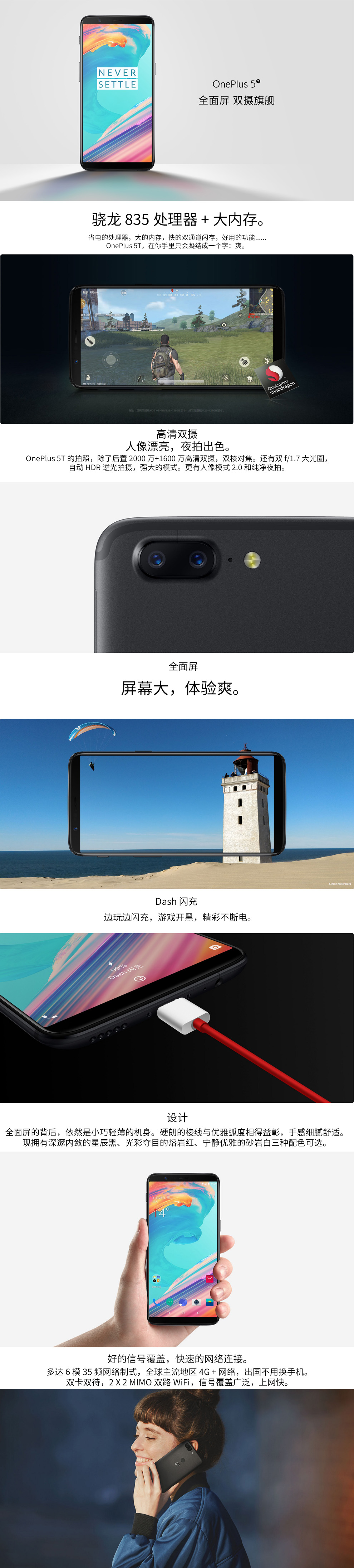 一加 5T(A5010)手机 OnePlus5T 砂岩白 全网通(8G+128G)