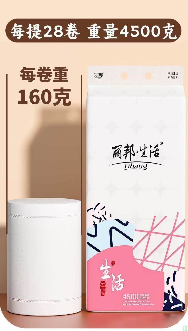 丽邦5层卫生纸9斤28卷原木家庭实惠装卷纸巾卷筒纸无芯手纸厕纸