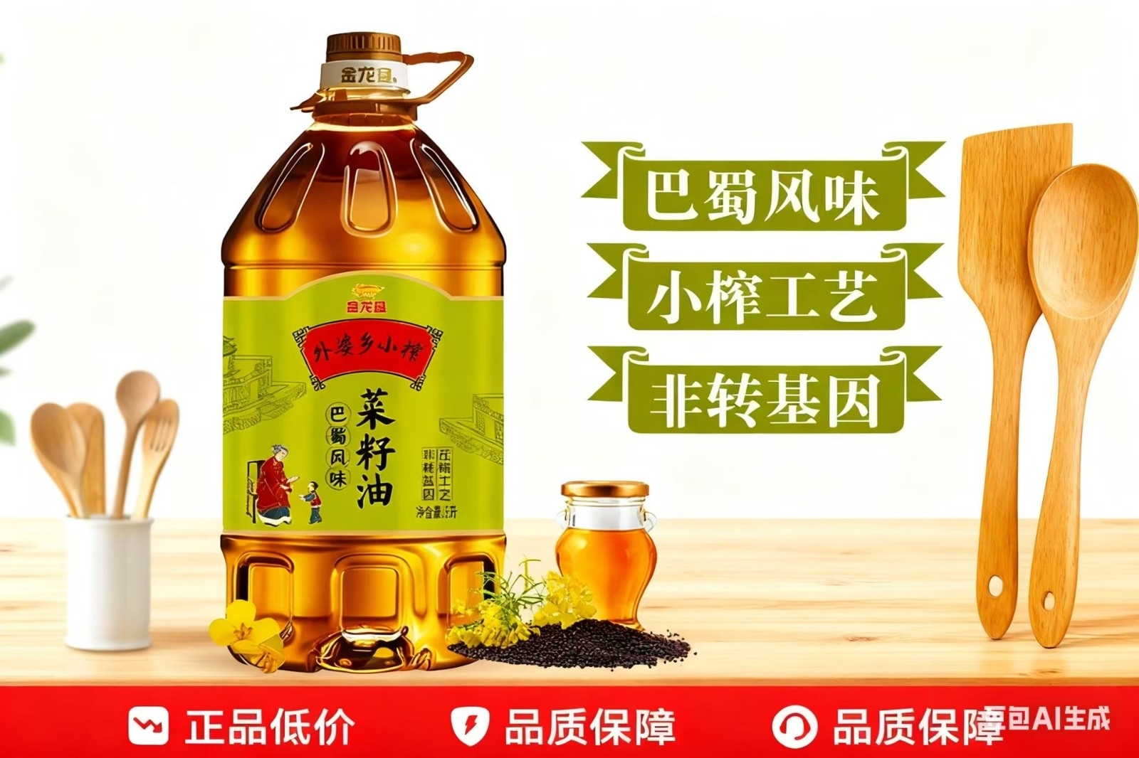 金龙鱼菜籽油 外婆乡小榨食用油5L巴蜀风味非转基因 物理压榨桶装