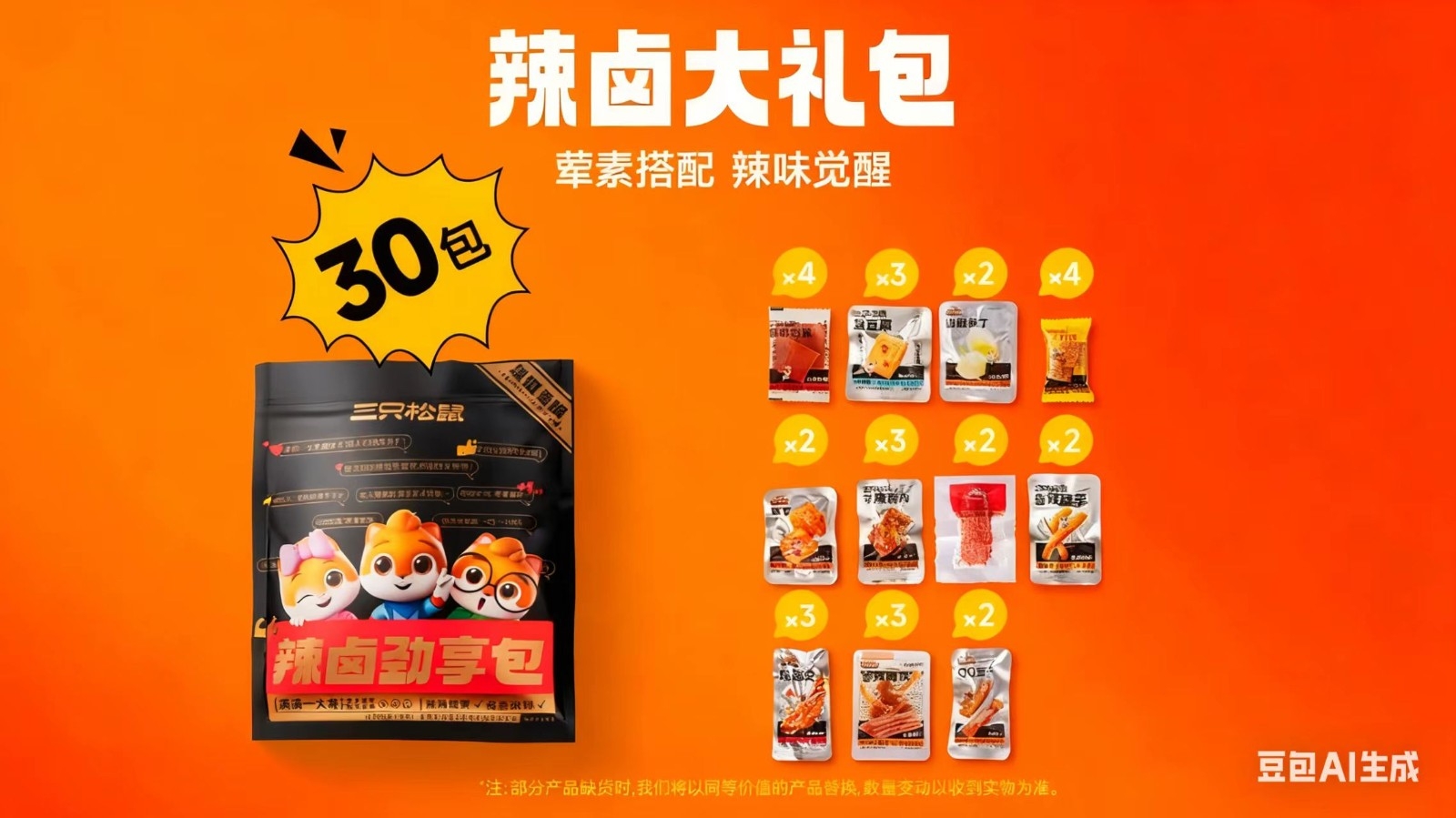 三只松鼠辣卤大礼包30包零食大礼包卤味夜宵出游解馋休闲小吃食品