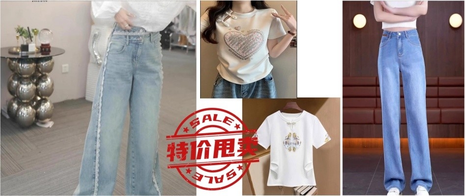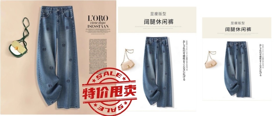浅蓝色蝴蝶结刺绣直筒牛仔裤女夏季大码胖mm高腰宽松显瘦阔腿长裤