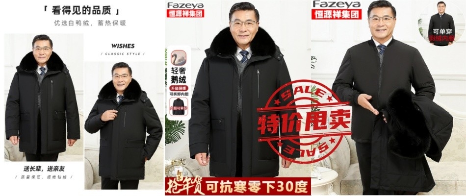 恒源祥集团彩羊鹅绒服中老年羽绒服男加厚中长款活里活面爸爸外套-淘宝网