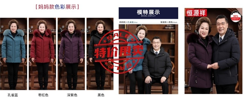 恒源祥情侣款羽绒服男女中老年女装冬季爸妈加厚奶奶冬装老人外套-淘宝网