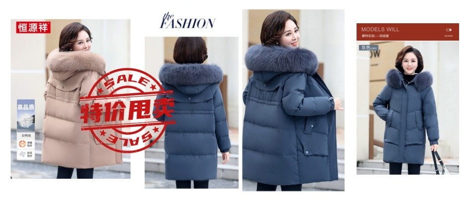 恒源祥品牌中年妈妈羽绒服女中长款洋气冬季中老年人大码加厚外套-淘宝网