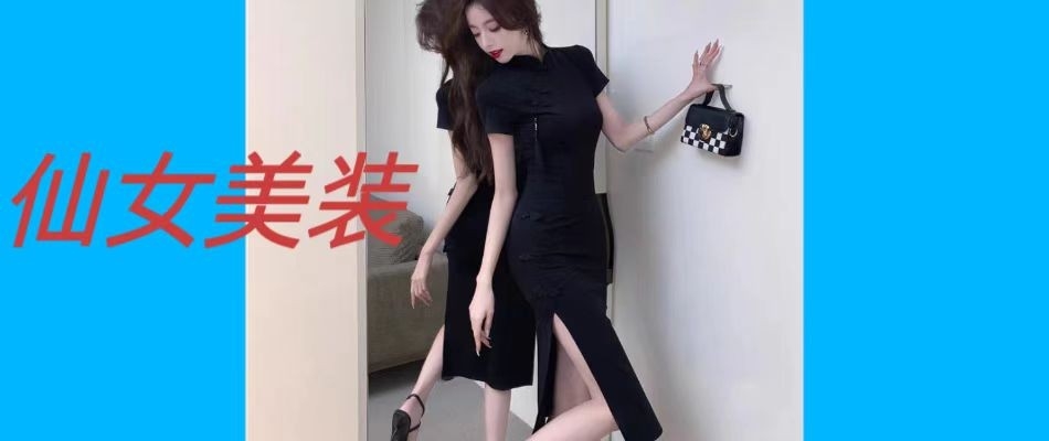 中式复古盘扣旗袍连衣裙女夏季级感气质小黑裙收腰显瘦包臀长裙