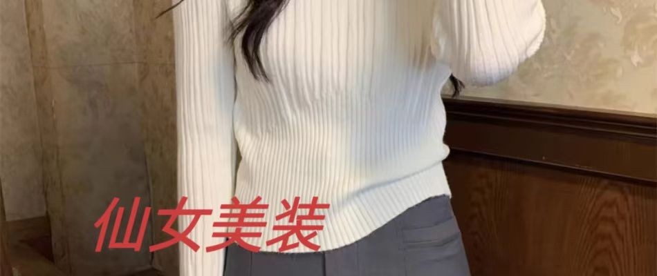 韩版坑条圆领长袖针织衫女春季新款小香风腰修身百搭打底上衣潮