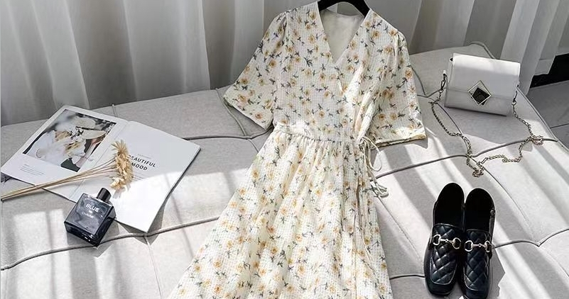 夏款小清新甜美碎花雪纺长袖针织吊带马甲两件套连衣裙女学生