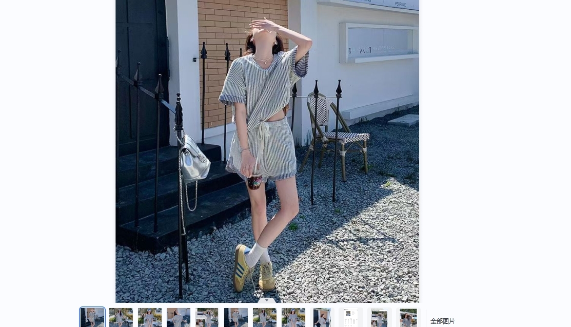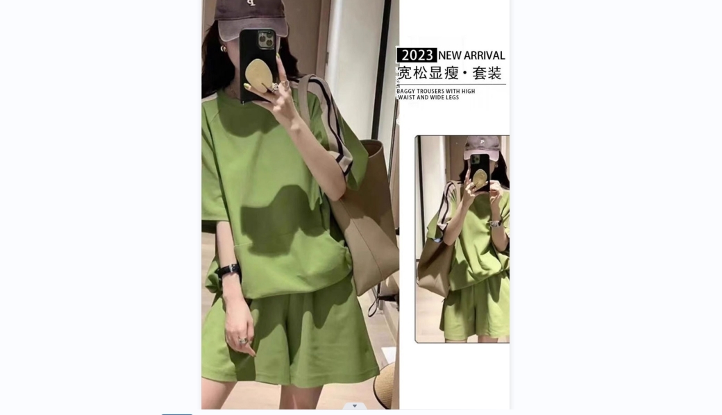2025夏季新款华夫格撞色休闲套装宽松显瘦显高正肩上衣短裤两件套