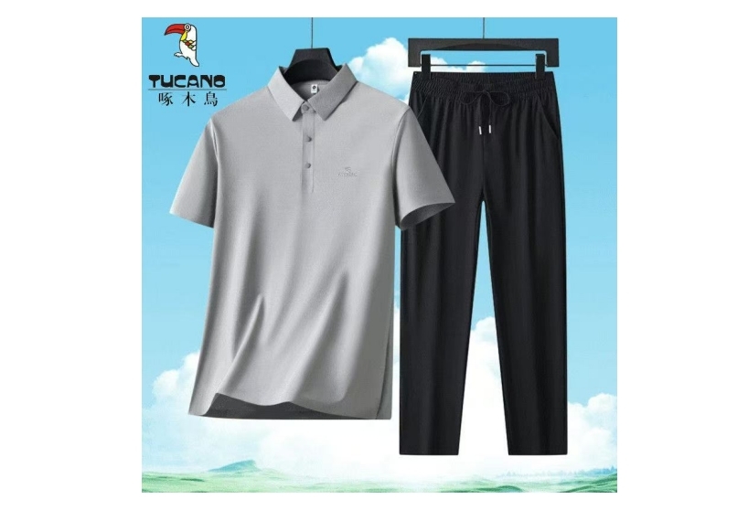 啄木鸟正品爆款夏季新款中老年爸爸装休闲POLO衫+冰丝裤两件套装