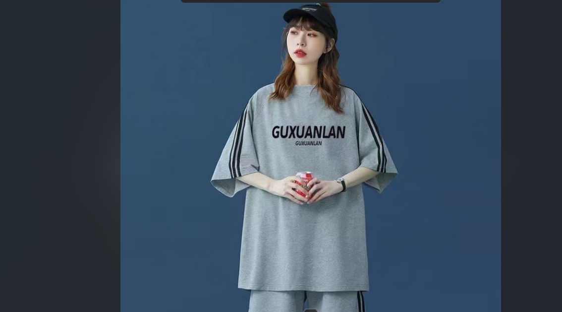 夏季港风短袖T恤男女套装潮流宽松ins学生三条杠短裤女薄款情侣装
