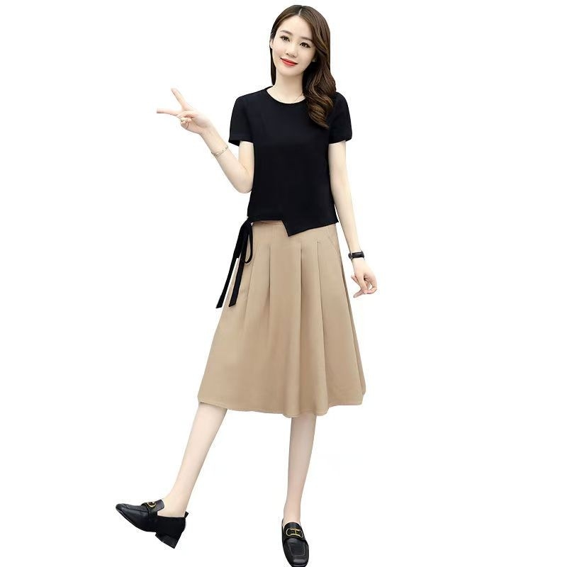 2025棉麻套装女短袖夏季新款时尚连衣裙小个子显瘦亚麻半身裙两件套潮