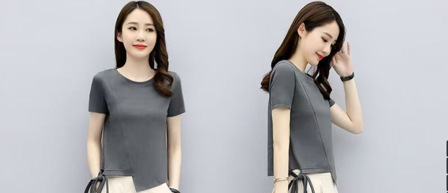 韩版遮肉大码设计感小个子短袖t恤女夏季小清新开叉百搭通勤上衣