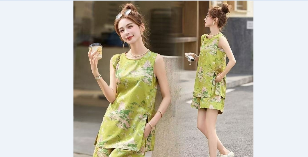 女士中式国风夏季新款复古气质印花无袖上衣短裤套装两件套2025新