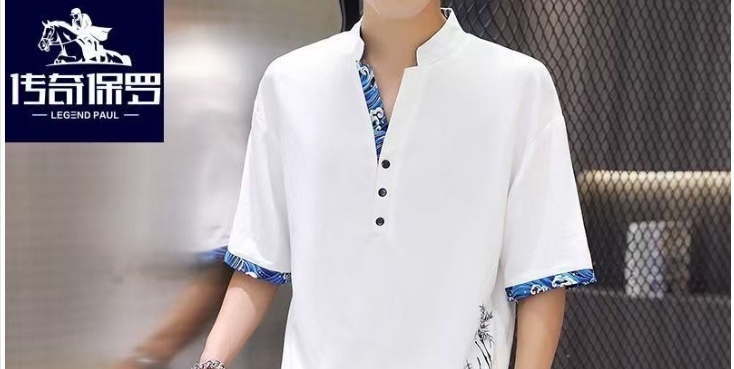 传奇保罗正品高档夏季冰丝套装男时尚休闲民族风潮流复古套装百搭