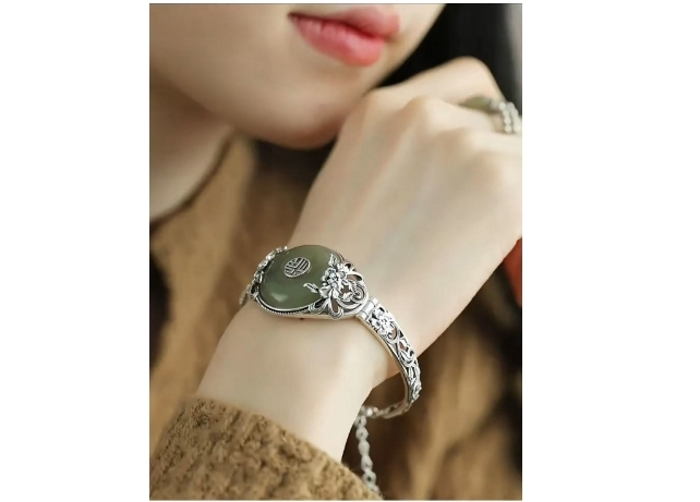 新中式复古牡丹花平安扣镯子女平安福字开口手镯高级感中国风手链